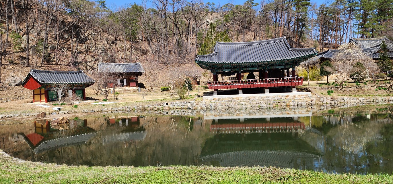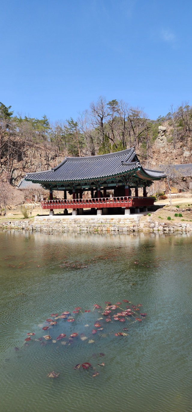 법영루에서 울리는 법고,범종 소리는 불영지에 잔잔한 물결을 이루게 하고 전면으로 터진 공간은 그 소리를 더욱 멀리까지 가도록 해 주변의 뭇 생명들에게 깨침과 평화로움을 전달하는 중요한 도구로 사용되고 있지 않을까 싶었다. 법영루와 주변의 전각 그리고 명부전 뒤로 보이는 부처 바위까지 불영지에 반영(反影)으로 보여 지는 모습은 가히 선경에 가까웠다.