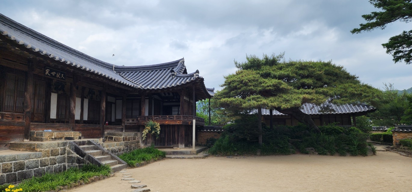한지에 쓴 글자의 색이 바래지거나 훼손 되면 그 위에 다시 한지를 덧대어 똑같이 필사해 두는 형식으로 지금까지 이어오고 있다고 한다. 충효절의 정신을 끝까지 이어가겠다는 결기가 느껴졌다. 사랑채 누마루 앞에 조성한 화단이 특이했다. 거대한 소나무가 누마루와 거의 닿아 있는 형태로 조성되어 있고 작은 동산의 형태를 띄고 있어 의아 했는데 나중에 알고 보니(해설사 설명) 인공으로 조성한 석가산 이라고 했다.