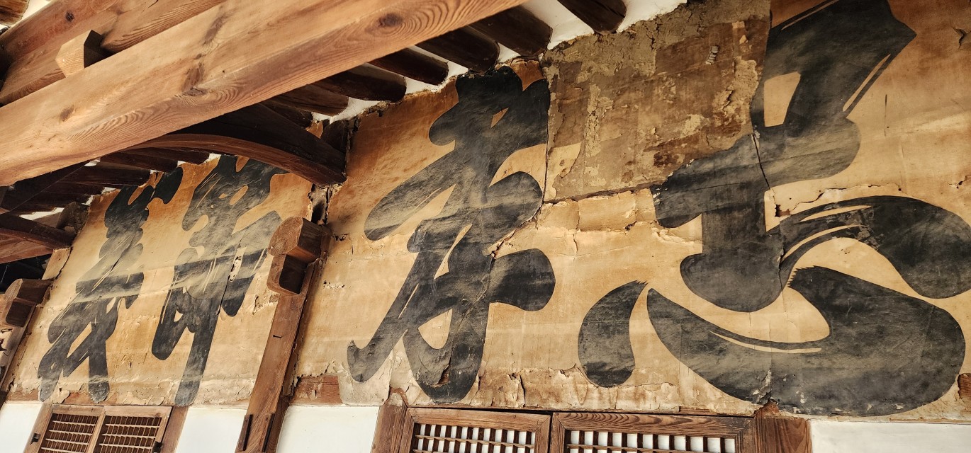 입구 솟을 대문을 들어서면 기단 높은 축대 위에 당당하게 자리 잡은 앉은 사랑채가 가장 먼저 눈에 띈다. 문헌세가라는 편액과 일필휘지로 써내려간 '충효절의(忠孝節義)'라는 글이 사랑채 벽면에 붙어 있어 아주 특이했다. 한옥 건축물 벽체에 그것도 사랑채 전면 벽에 한지가 겹겹이 붙어 있는 형태로 세월의 흔적이 물씬 느껴지는 글씨가 예사롭지 않았다. 충효절의의 정신을 늘 마음속에 하루도 잊지 않고 살아가겠다는 다짐으로 여겨졌다.
