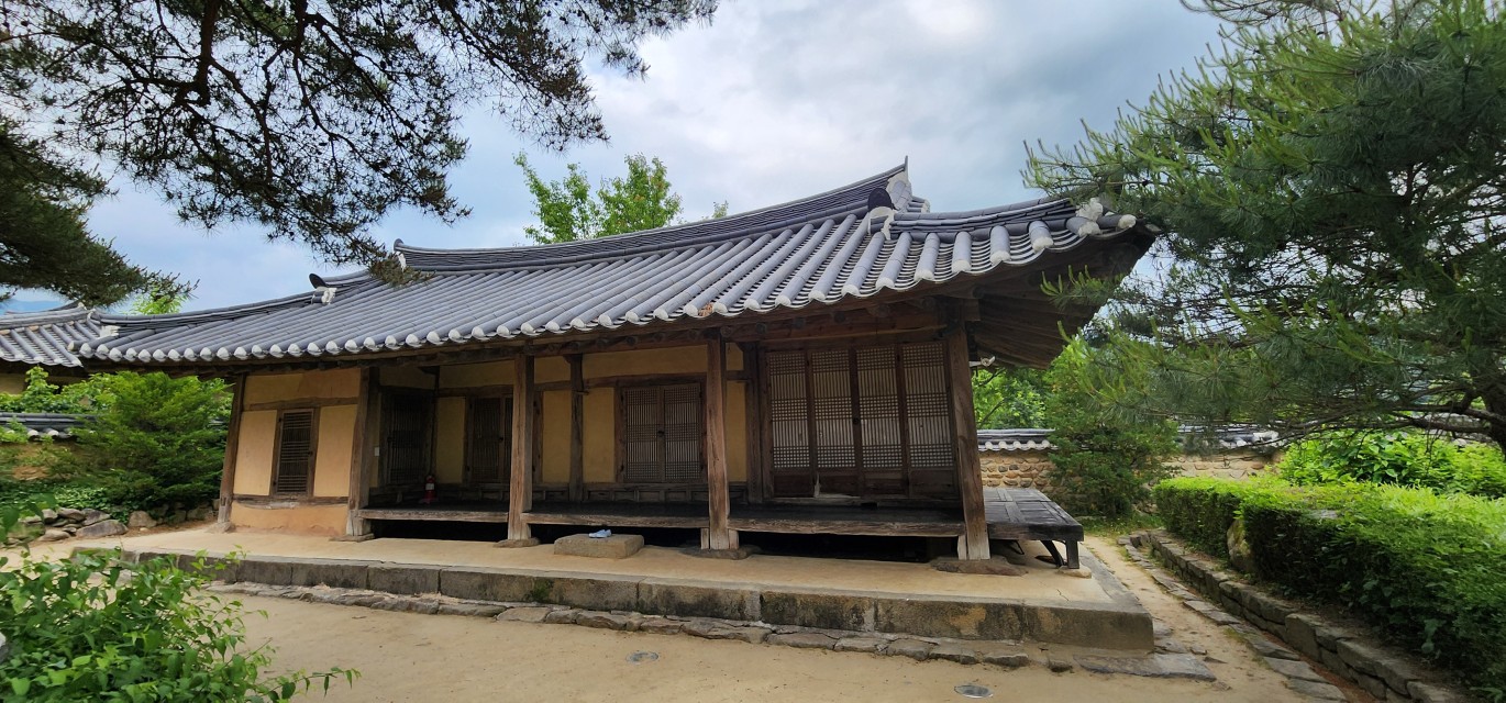 Inside, the prominent Sarangchae features inscriptions like "Munheonsaga" and "Chunghyojeolui" on its walls, signifying loyalty and integrity. These writings are preserved by layering hanji paper over the originals, showing dedication to their values. The garden, with a large pine tree nearly touching the Sarangchae, includes a stone mound known as Seokgasan, an artificial mountain symbolizing harmony with nature. This garden allowed the family to enjoy nature and find peace, embodying their belief in living as part of nature. While the current Seokgasan differs from the original, it still reflects this tradition.