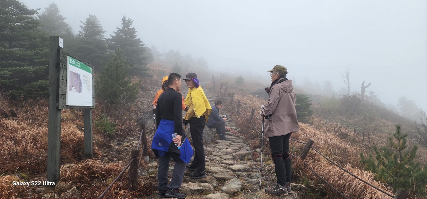 최소 5시간은 걸리는 것이 보통인데 대단했다. 산을 날라 다닌 모양이다 싶었다. 함께한 여자 분도 전혀 지친 모습이 없어 우리는 눈만 동그랗게 뜨고 연신 놀라움으로 그들을 쳐다보고 속으로 감탄사만을 연발했다. 인천에서 전날 밤 산악회회원들과 버스를 타고 출발 새벽에 도착 후 잠시 눈을 붙인 후 출발했다고 한다. 가져온 전투 식량 하나를 그들에게 건네자 고마워했다. 그들도 잠시 후 자신들이 가져온 떡을 몇 개 우리들에게 나누어 주었다.
